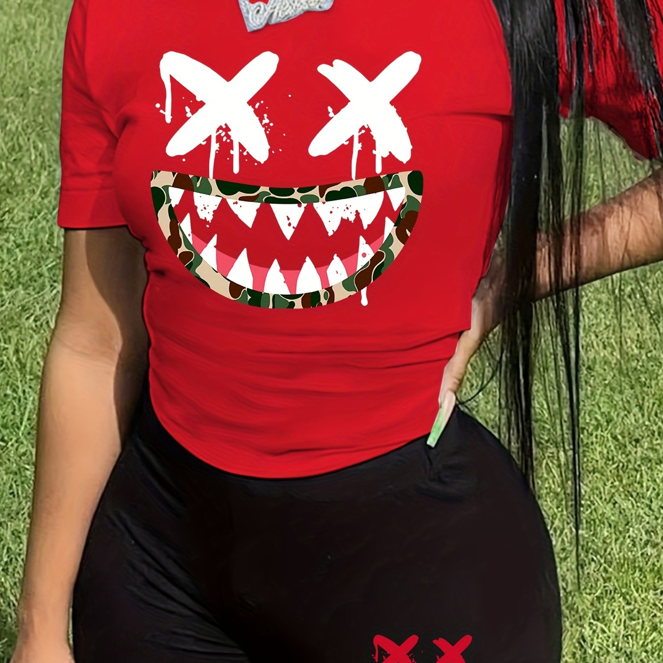 ????️ Graphic Print Two-piece Set, Crew Neck Short Sleeve Tee & Slim Shorts Outfits, Women’s Clothing