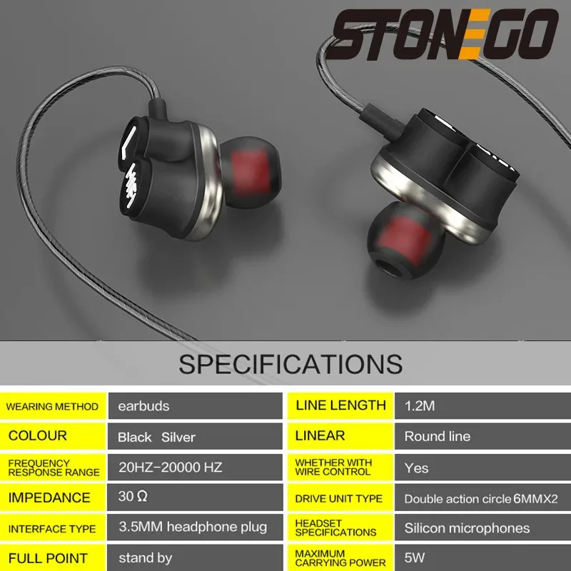 Type: Dual Dynamic Driver In-Ear Earbuds Earphones