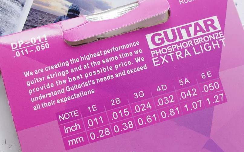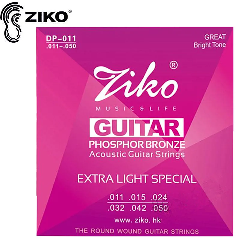 Product Description 1. Brand : ZIKO 2. Type: 011 3. Size : E-1st 0.011 , B-2nd 0.015 , G-3rd 0.024 , D-4th 0.032 , A-5th 0.042 , E-6th 0.050 4. Gross weight : 0.060KG 5. Package : 1 set PHOSPHOR BRONZE