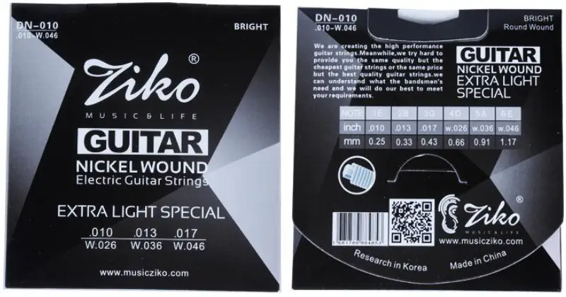 Product Description 1. Brand : ZIKO 2. Type: 010-046 3. Size : E-1st 0.010 , B-2nd 0.013 , G-3rd 0.017 , D-4th 0.026 , A-5th 0.036 , E-6th 0.046 4. Package : 1 set